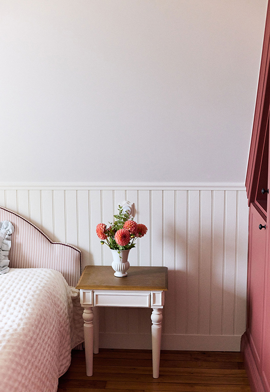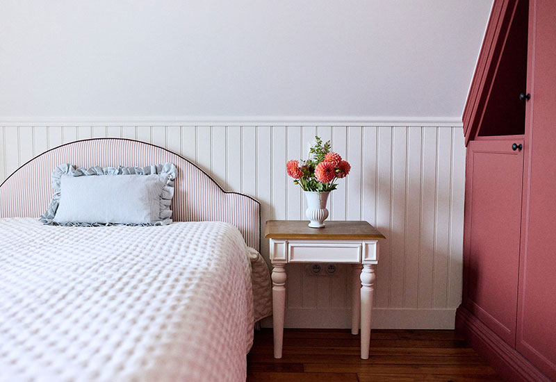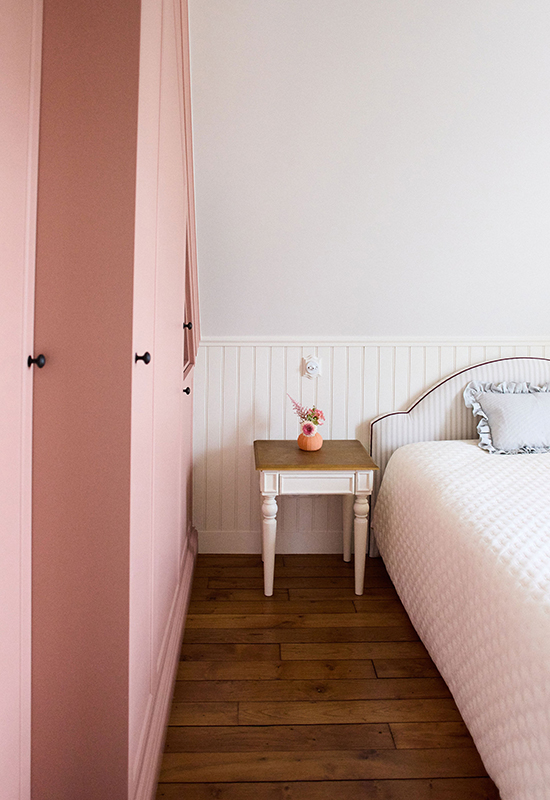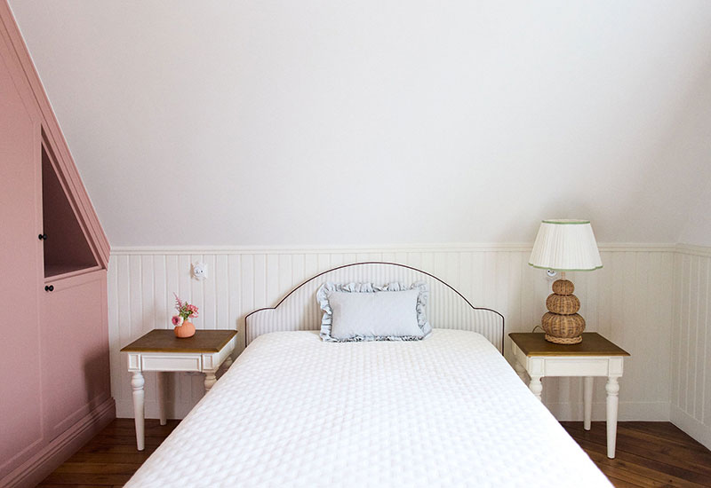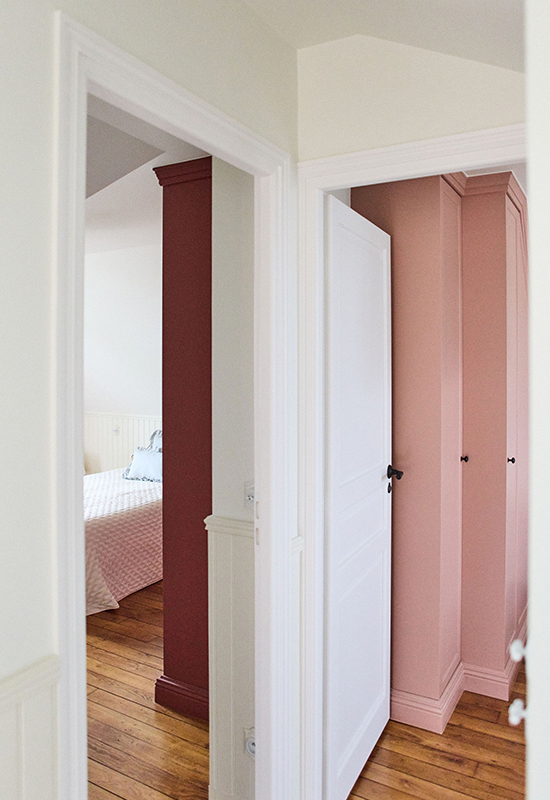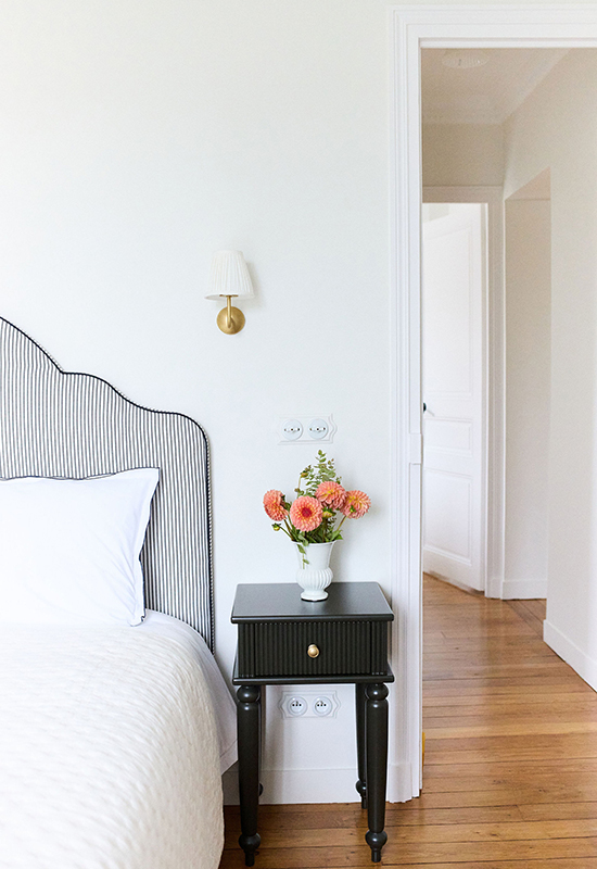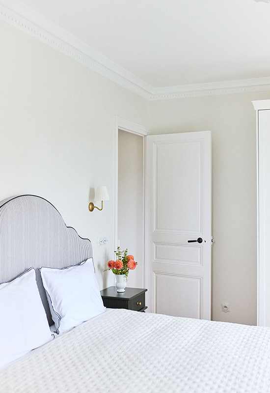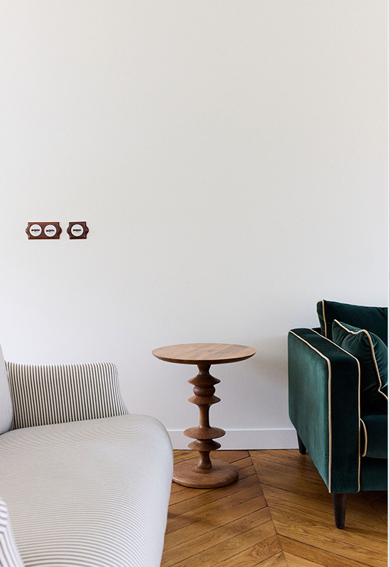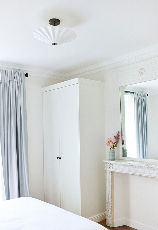 Deux ans de travaux (avec les démarches administratifs). Un travail entièrement dessiné et réalisé sur mesure: la menuiserie (cuisine, dressing, têtes de lit, meuble de salle de bain, banquette, moulure en staff, cheminée, bibliothèque, garde corps..). Tout le mobilier et la décoration ont été choisi avec soin pour l’harmonie du projet.